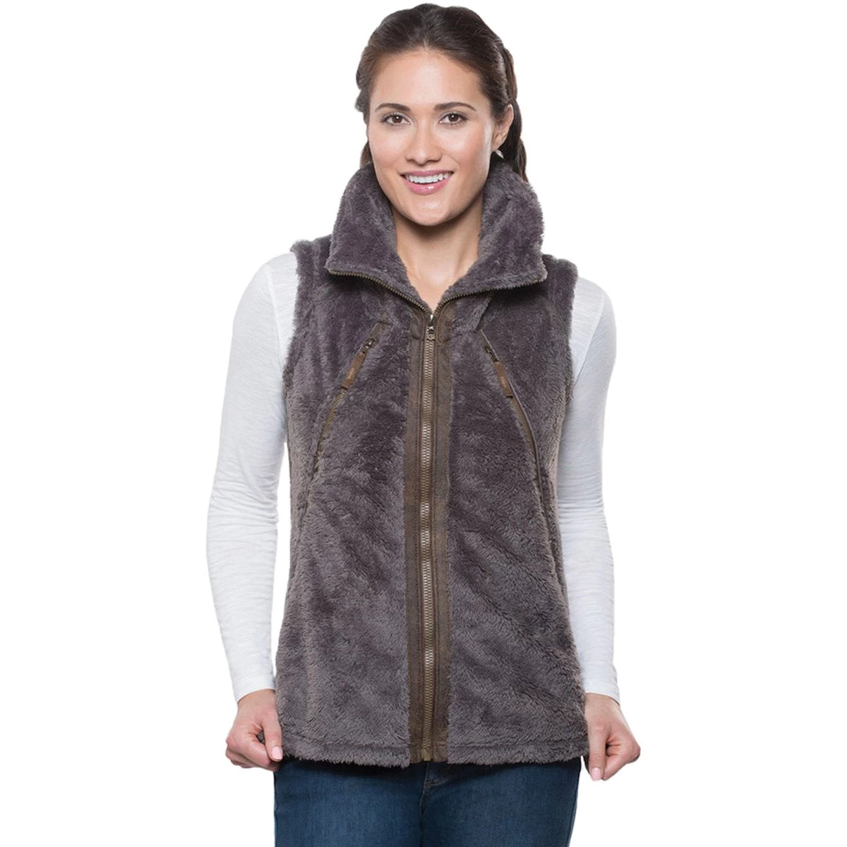 The result is this warm, luxurious, fleece Flight Vest with a soft plush feel and two-toned threads for depth of color that appeals to the senses on every level. A radically well designed hood that zippers out for warmth and beauty. Based on the successful KÜHL Women’s Flight Jacket, this piece is destined to be a classic.